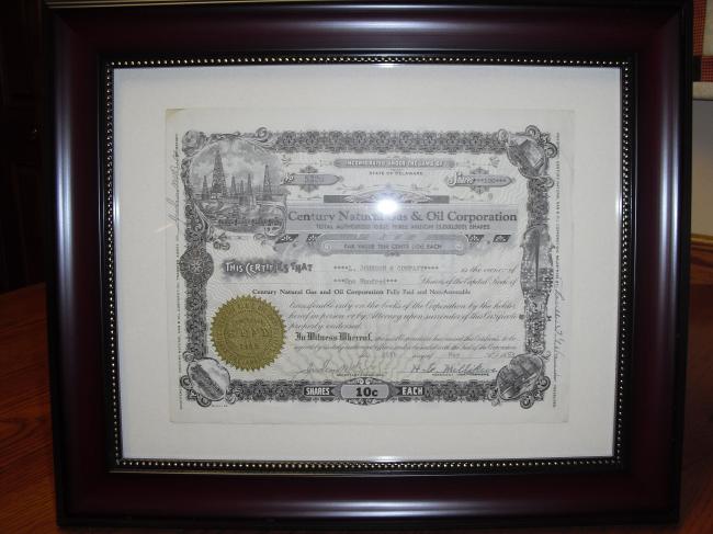 Stock from the Century Natural Gas and Oil Co