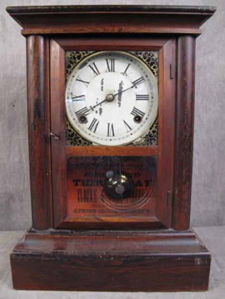 Atkins Clock Co. Bristol, Conn. With key and pendulum. American faux rosewood cottage clock.